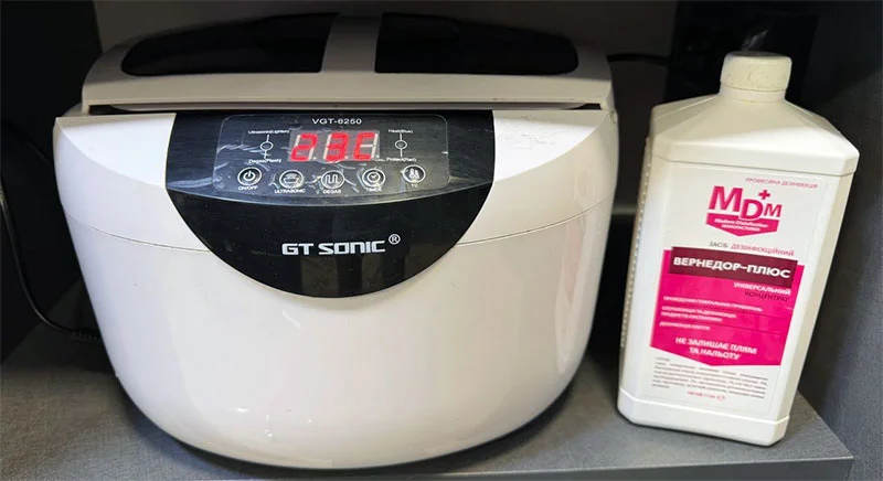Безпека клієнтів – наш пріоритет. Кожен інструмент проходить 3-етапну дезінфекцію: ультразвукова ванночка, бактерицидна лампа та фінальна обробка спреєм. Використовуються одноразові комірці та антисептики для рук. Ви особисто бачите, що інструмент оброблено безпосередньо перед вашою стрижкою.